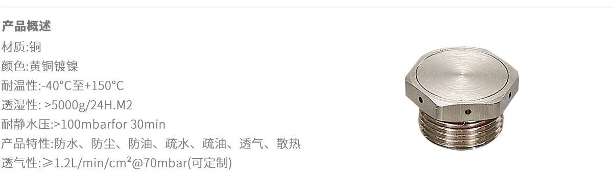 銅鍍鎳六角防水透氣閥M-黃銅防水透氣閥-浙江民數(shù)科技有限公司